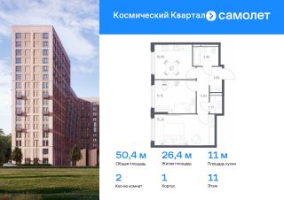 2-к, Космический Квартал ЖК, 1 Показать на карте