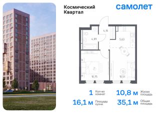 Предлагается 1-комнатная квартира комфорт-класса 35,55 кв.м в корпусе 1 на 12 этаже, в ЖК ''Космический Квартал''Квартира без отделки. Доступность опции ''отделка'' и возможность комплектации мебелью и декором уточняйте у застройщика.Приобрести квартиру возможно по специальным акциям от застройщика, с текущими условиями акций можно ознакомиться в блоке Акций.Цена динамическая и может отличаться, уточняйте актуальность у застройщика.''Космический Квартал'' находится в Московской области, в Королеве. В Королеве находятся несколько парков и лесов, а реки Клязьма и Яуза окружают наукоград с двух сторон. Путь до Москвы будет быстрым и удобным: до МКАД — 20 минут на автомобиле, а до ж/д станция Болшево - 8 минут на авто или 20 минут пешком.В проекте предусмотрены собственный детский сад, многоуровневые паркинги, а также магазины, спортзал, ресторан и аптеки на первых этажах домов. Неподалеку от квартала находятся городские гимназии 3 и ''Ковчег'' и лицей 4. ''Космический Квартал'' — это 3 монолитных дома высотой 12-17 этажей. Во внутреннем приватном дворе-парке будут детские и спортивные площадки. А для занятий спортом будут обустроены воркаут-пространства. Все подъезды — с безбарьерным входом. В лобби есть помещения для велосипедов и колясок. На техническом этаже — индивидуальные кладовые для сезонных вещей. Продуманные планировки от небольших студий до просторных 4-комнатных квартир с гардеробной, постирочной и гостевым санузлом. Квартиры сдаются как с отделкой, так и без нее.