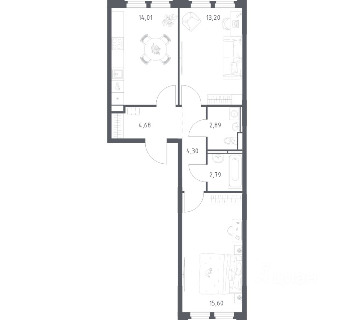 Строим кварталы для жизни с заботой о будущем. Предлагается 2-комнатная квартира комфорт-класса площадью 57,47 кв.м в корпусе 1 на 3-м этаже, в жилом комплексе ''Космический Квартал''. Квартиры комплекса — на выбор: могут быть как с отделкой, так и без. В случае с готовой отделкой в комнатах и прихожей уже будут обои, натяжные потолки и ламинат, а в санузлах — керамогранит на полу и керамическая плитка на стенах. Мы подведем все коммуникации и установим сантехнику. Светлые тона визуально делают комнаты еще просторнее. Вы легко воплотите любые идеи по обустройству и создадите интерьер в современном или классическом стиле. Можно сразу заказать кухню, комплекты мебели, светильники, декор и даже посуду в нашем маркетплейсе — мы полностью подготовим квартиру к новоселью. Приобрести квартиру возможно по специальным акциям от застройщика, с текущими условиями акций можно ознакомиться в блоке ''Акций''. Цена динамическая и может отличаться, уточняйте актуальность у застройщика. ''Космический Квартал'' находится в Московской области, в Королеве. В Королеве находятся несколько парков и лесов, а реки Клязьма и Яуза окружают наукоград с двух сторон. Путь до Москвы будет быстрым и удобным: до МКАД — 20 минут на автомобиле, а до ж/д станция Болшево - 8 минут на авто или 20 минут пешком. В проекте предусмотрены собственный детский сад, многоуровневые паркинги, а также магазины, спортзал, ресторан и аптеки на первых этажах домов. Неподалеку от квартала находятся городские гимназии 3 и ''Ковчег'' и лицей 4. ''Космический Квартал'' — это 3 монолитных дома высотой 12-17 этажей. Во внутреннем приватном дворе-парке будут детские и спортивные площадки. А для занятий спортом будут обустроены воркаут-пространства. Все подъезды — с безбарьерным входом. В лобби есть помещения для велосипедов и колясок. На техническом этаже — индивидуальные кладовые для сезонных вещей. Продуманные планировки от небольших студий до просторных 4-комнатных квартир с гардеробной, постирочной и гостевым санузлом. Квартиры сдаются как с отделкой, так и без нее.