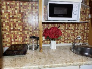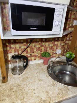 Отличная светлая студия. Полностью готова к проживанию. Есть холодильник, индукционная плита, духовка, микроволновка, кухонная утварь.Предоплата за 1 месяц