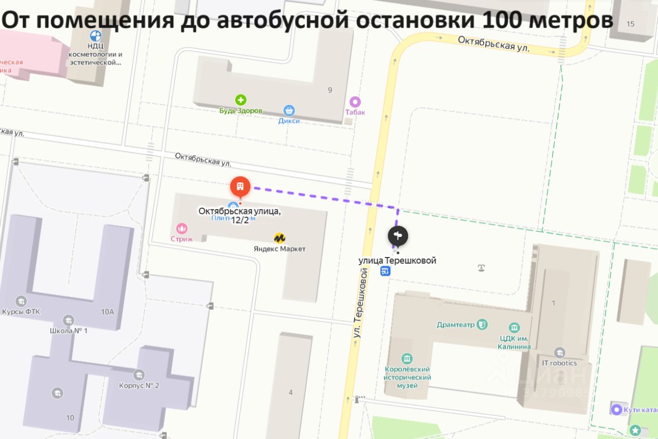 Соcеди: сетeвой магазин Wildberries, Lamoda, Oзон, Яндeкc маркeт, Стриж. Удобная транспортная доступность. От помещения до автобусной остановки 100 метров, до платформы Подлипки-Дачные 950 метров, до Ярославского шоссе 2 километра. В собственности. Долгосрочная аренда. Арендные каникулы до момента вашего открытия. Арендная ставка + все коммунальные расходы. Оперативный показ. Риелтор комиссию не берёт. Специалист по недвижимости - Светлана.