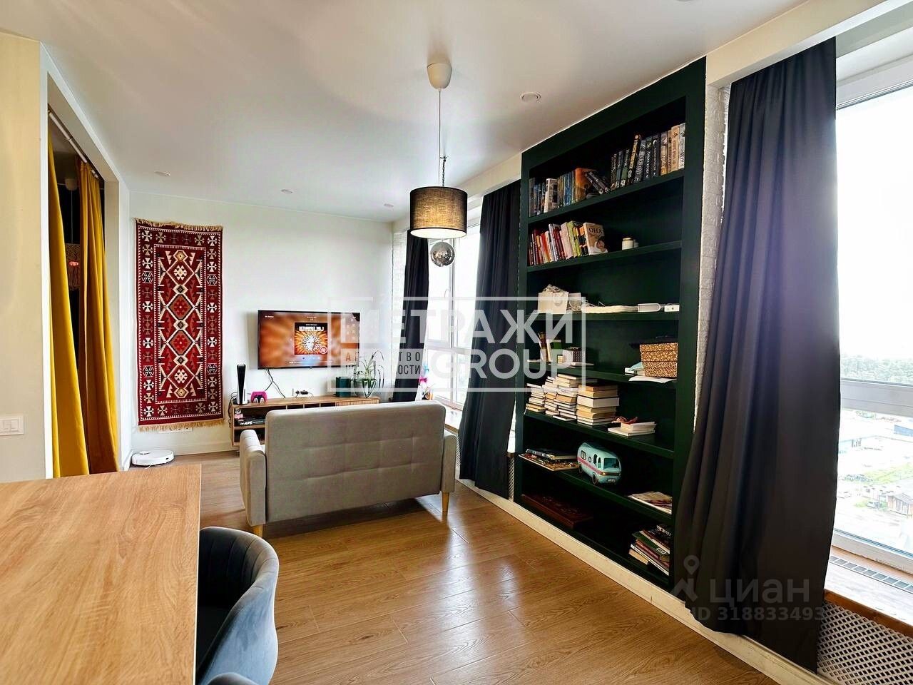Квартира расположена на 14 этаже 17-этажного монолитного дома, построенного в 2018 году. Общая площадь квартиры составляет 46,2 кв. м, из большая кухня-гостиная на 22 кв.м, одна изолированная комната на 12 кв.м с собственным удобным и функциональным гардеробом. В квартире выполнен качественный евроремонт, благодаря которому можно сразу заехать и жить. Совмещённый санузел обеспечивает удобство и функциональность. Большие панорамные окна выходят на лес. Ремонт делали для себя, из дорогостоящих материалов премиум класса.