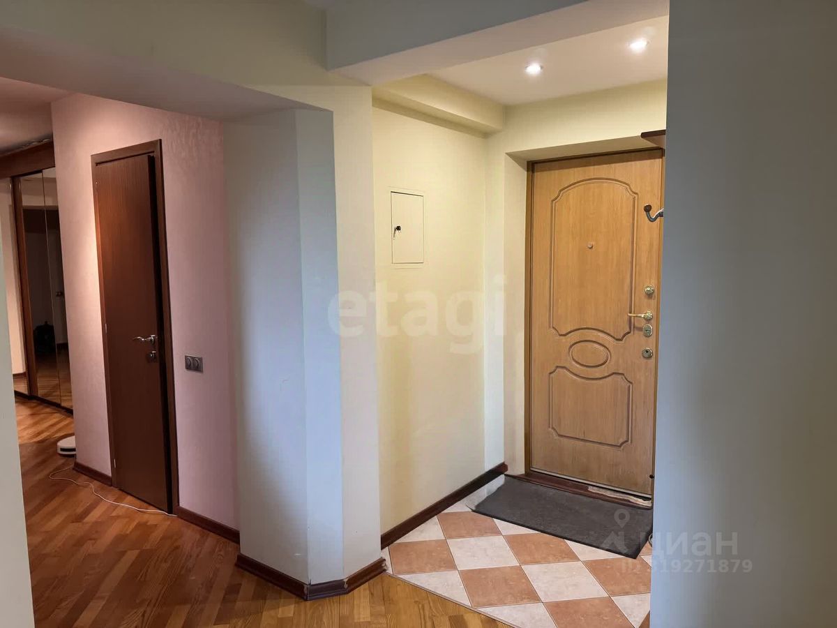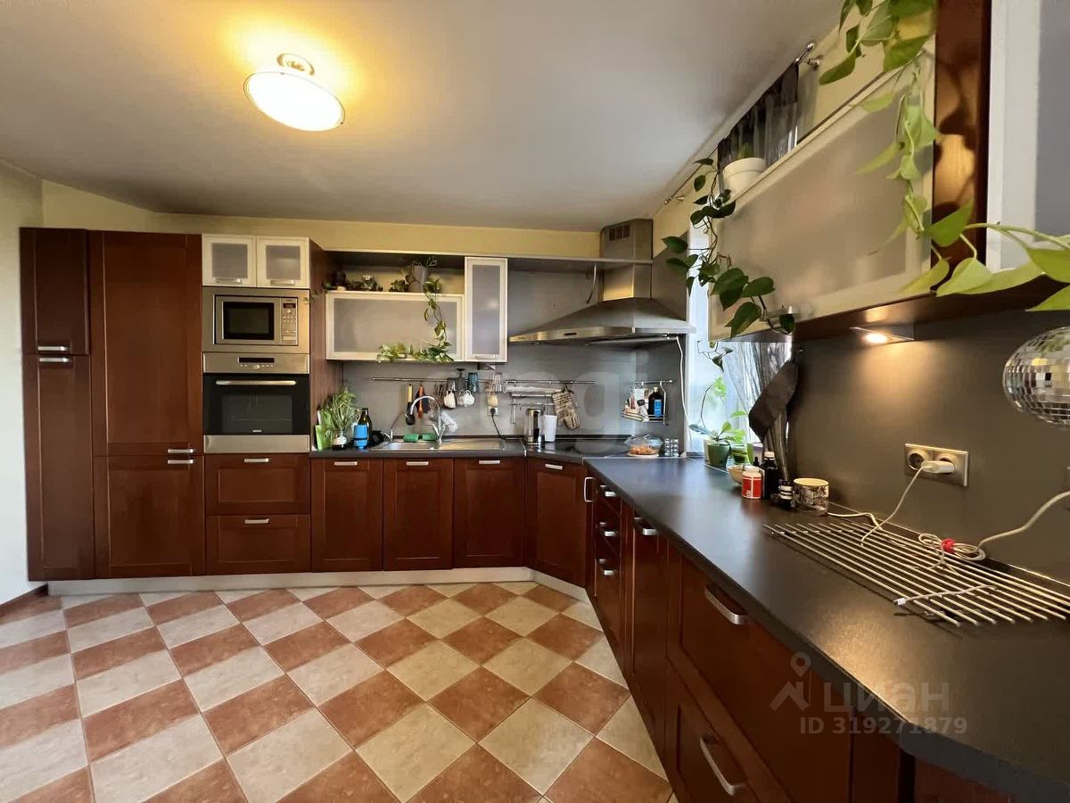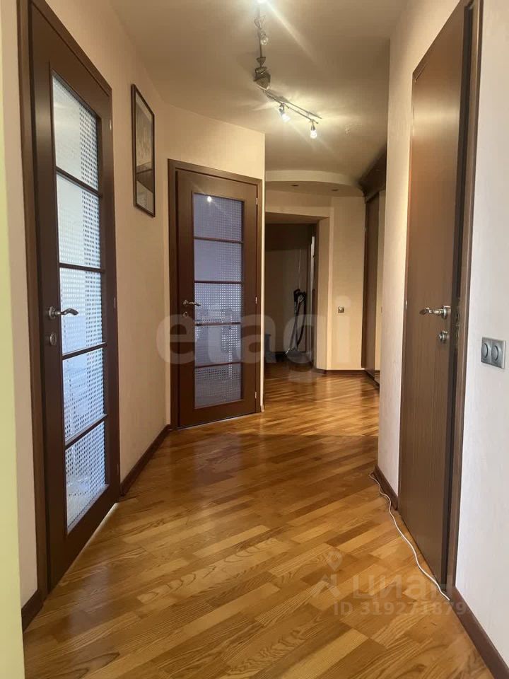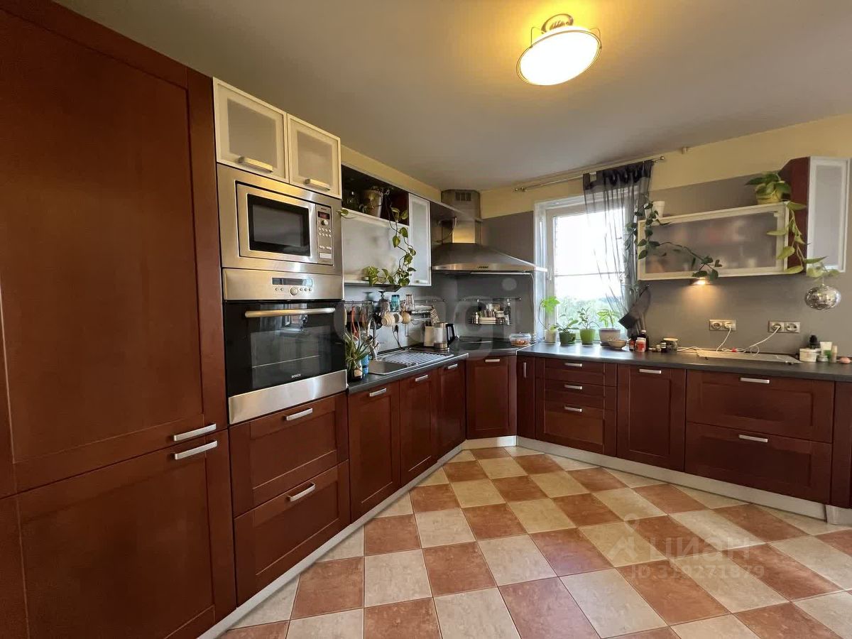 Квартира очень большая, очень светлая, выходит почти всеми окнами на лес, и только в спальне - во двор. Две лоджии, одна объединена с гостиной. Два санузла, один большой с ванной и душевой , с окном. Второй сан узел у входа гостевой. Мебель вся на заказ, дорогая и хорошая, вся мебель и техника остается. Встроенный холодильник, посудомойка, духовка. Кухня ''Стильные кухни'' в идеальном состоянии. Полы - паркетная доска. В санузле теплый пол, установлен бойлер, есть кладовая в квартире или гардеробная(кому как нравится можно использовать) большой вместительный встроенный шкаф в коридоре. Квартир в доме мало и на этаже 4 квартиры и все большие и живут собственники. Парковка стихийная во дворе, но места всегда есть без проблем Показы по договоренности. Код пользователя: 63865