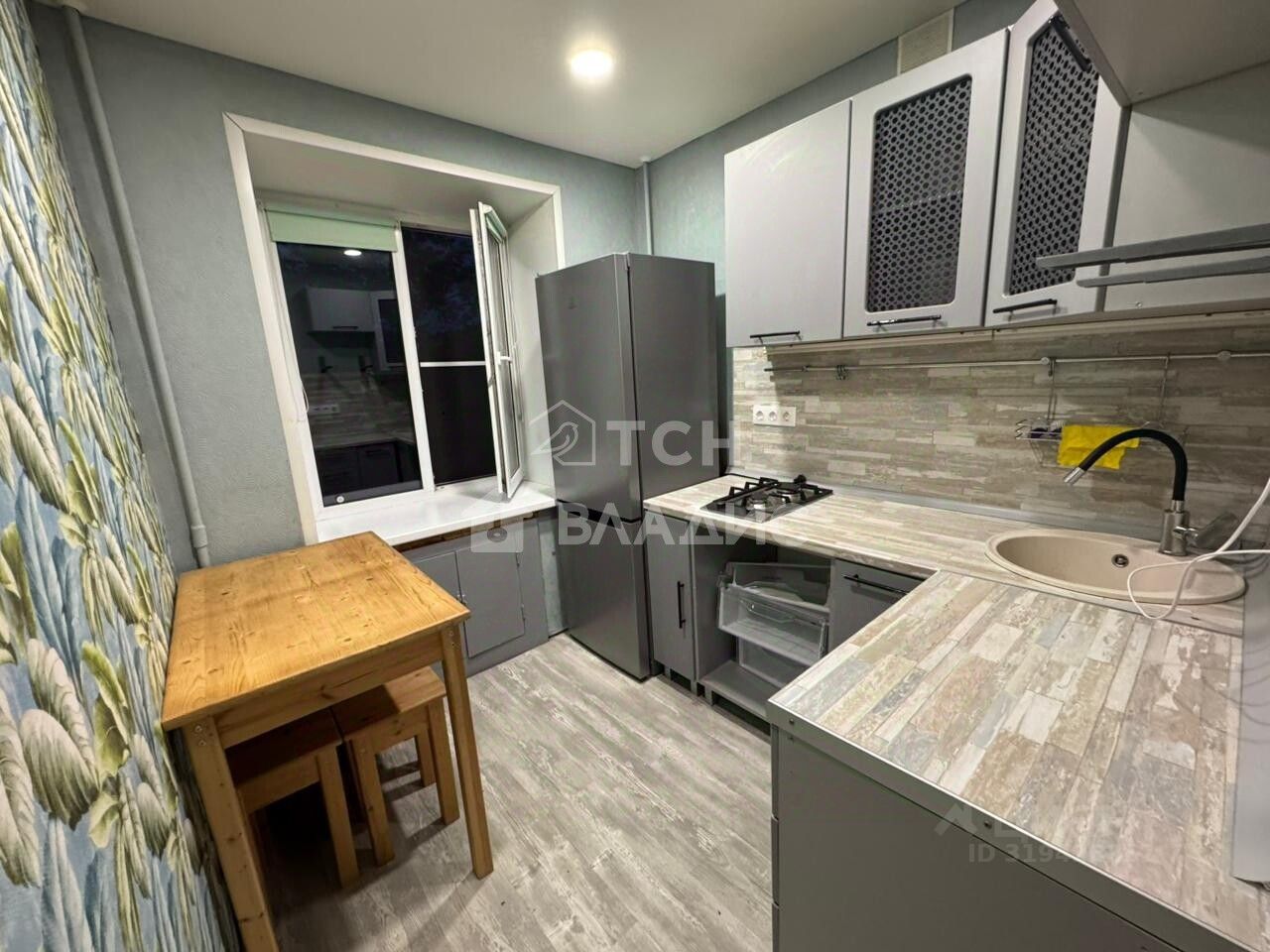 Ремонт косметический, квартира полностью мебелирована: шкаф купе, 2 спальных места, кухонный гарнитур, холодильник, электрочайник, кондиционер, стиральная машина. В доме центральное отопление, санузел совмещенный, окна выходят в тихий уютный двор.