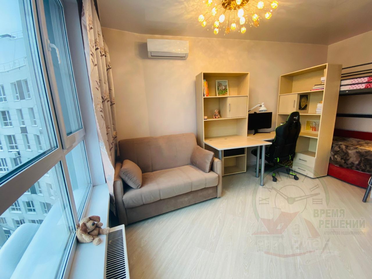 Квартира-студия общей площадью 30 кв.м. Кухня-ниша 5.2 кв.м. Оборудованная кухонным гарнитуром и встроенной техникой. Комната 17,9 кв.м. с двумя спальными местами и рабочей зоной. Санузел совмещен 3,7 кв.м. Прихожая 3,2 кв.м. со встроенным шкафом купэ.
