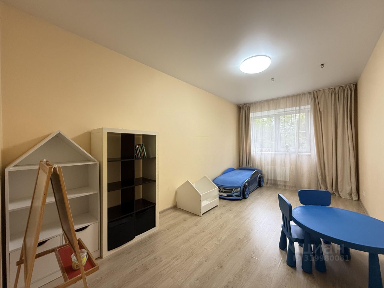 Меблированная полностью, в детской кровать- машина, есть крепления для качелей или гамака.
