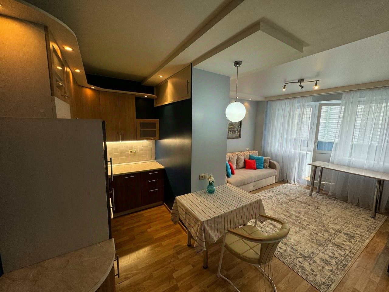 Сдам 1 комнатную квартиру-студию в Королеве, ул. Спартаковская, д.15 (ст. Болшево). Современный дом. огороженная территория, закрытая стоянка во дворе для а/м. 12 этаж 22-го монолит-кирпичного дома. Большая застекленная лоджия. Хороший ремонт. 38м2 - общая площадь квартиры. С мебелью и техникой: встроенная кухня, посудомоечная машина, холодильник, стиральная машина, много встроенных шкафов, новый диван, длинный комод. Столики и кресла, мебель в прихожей. Интернет. Отличный, престижный район. До ст. Болшево - 7 минут пешком. Сдается на длительный срок. Порядочным , платежеспособным людям 1-2 чел. Без животных. 43 000 рублей+счетчики. Комиссия агентства - 60% по факту заселения.