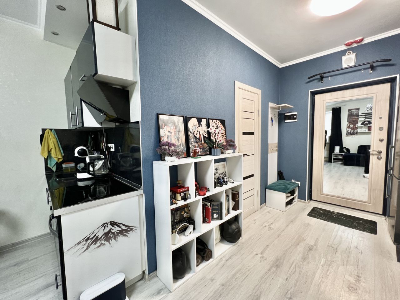 Студия очень светлая и уютная. Сделан качественный ремонт. Делали для себя. Мебель и бытовую технику ( кроме телевизора) оставляем новому владельцу.