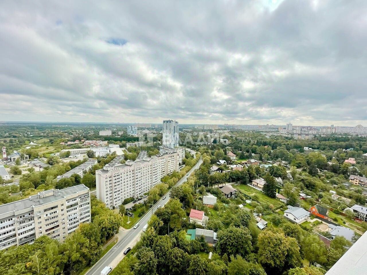 Видовой 24 этаж, окна выходят на тихую улицу, частный сектор и реку.