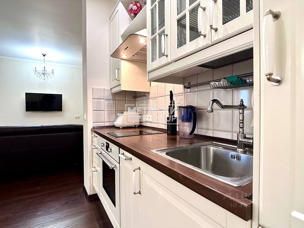 Интерьер квартиры оснащён всей необходимой встроенной техникой и мебелью для комфортного проживания. Установлена современная охранная сигнализация.