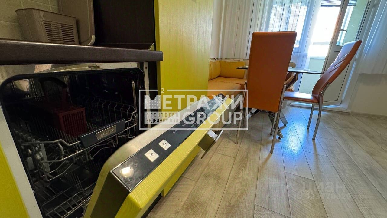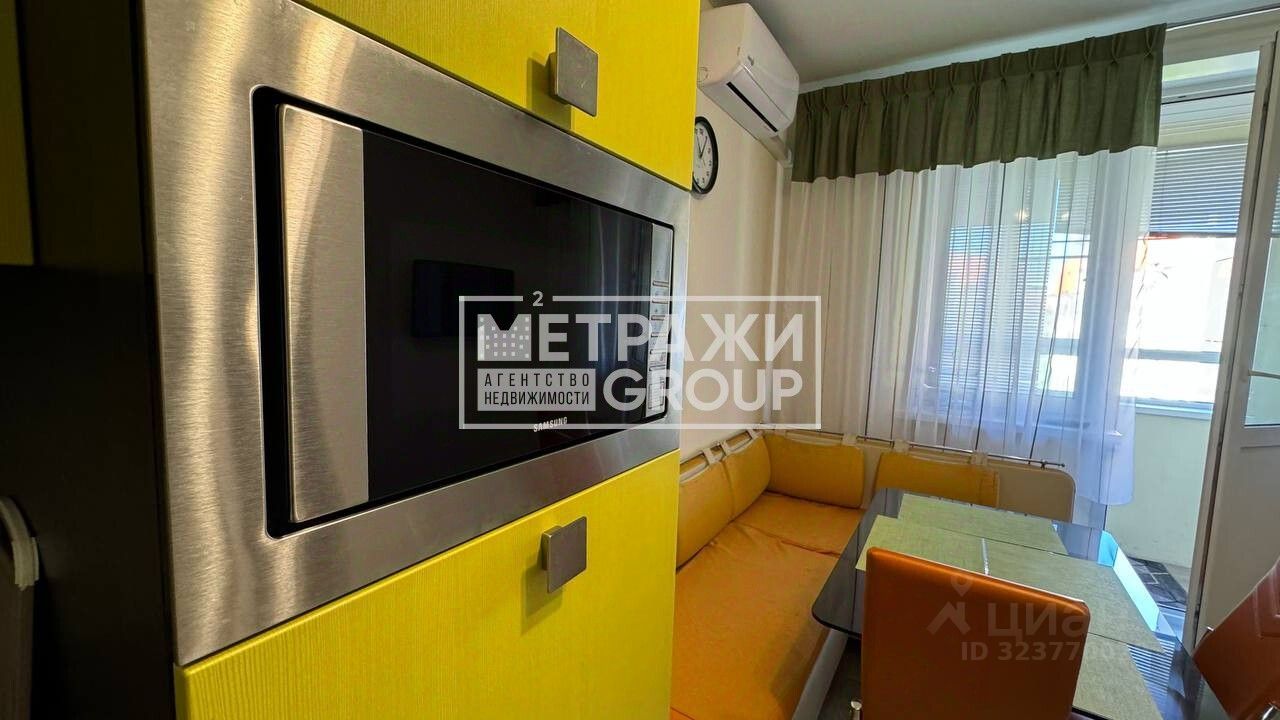 Отличный евроремонт. Есть все необходимо для полноценной жизни - Двухспальная кровать, детская кровать Шкафы, кухонный стол и стулья. Кондиционер. Стиральная машина, холодильник, духовка, варочная панель, вытяжка и посудомоечная машина. Застекленная лоджия - 2,5 метра