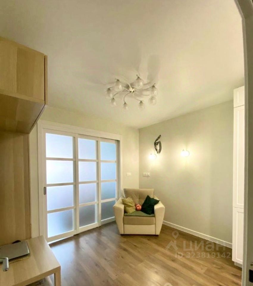 Две изолированные комнаты плюс гостиная совмещенная с кухней, большая застекленная лоджия.