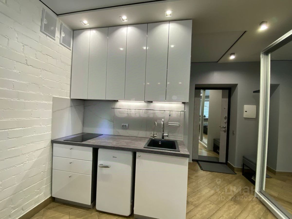 Площадь: 23,3 кв. м. Этаж: 1-й в 4-этажном доме. Дом: Кирпично-монолитный, 2021 года постройки. Потолки: 2,7 м. Ремонт: Качественный дизайнерский ремонт ''делали для себя''. Все новое: мебель, сантехника, бытовая техника, теплые полы. Идеальное состояние.