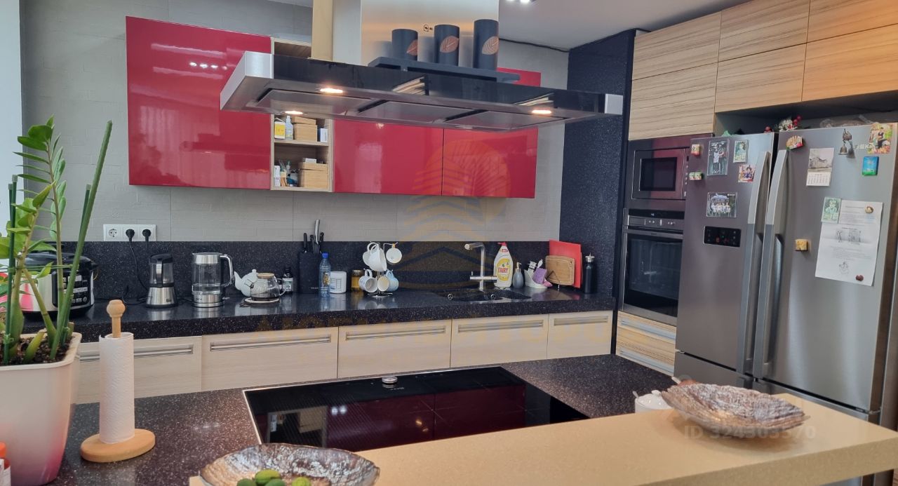 Первый уровень: - прихожая с отдельной гардеробной комнатой, - зелёная зона с комнатными растениями, в которой установлена беговая дорожка, - пространство гостиной: мягкая мебель, электро камин, домашний кинотеатр со звуковой системой пр-во Англия, лестница на второй уровень (безопасная, двухмаршевая, обита ковролином), - выход на террасу (эксплуатируемая, предусмотренная проектом строительства), - гостиная переходит в кухню-столовую: дорогой кухонный гарнитур, остров с варочной поверхностью Neff, везде каменные столешницы и фартук, встроенные СВЧ и духовой шкаф, всё Neff, посудомоечная машина новая, огромный двойной холодильник Beko, раскладной обеденный стол, - из кухни вход в отдельную постирочную комнату: стиральная машина, сушки для белья, - отдельный рабочий кабинет можно перепрофилировать под дополнительную спальную, - просторный совмещённый сан. узел из которого вход в САУНУ (кедр, солевая печь), душевая кабина с гидромассажем.
