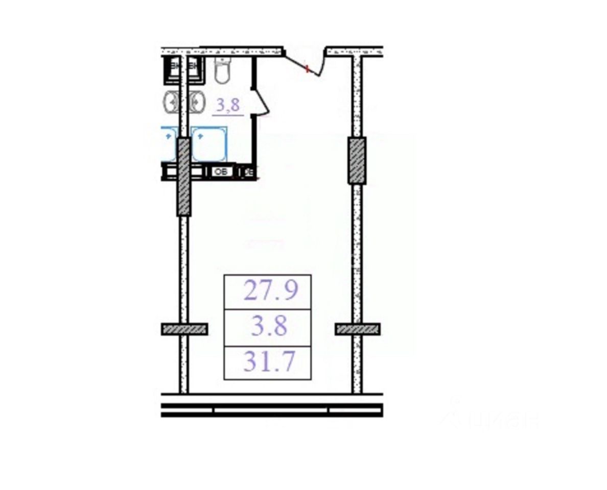 Общая площадь 31.7 метр (по БТИ), комфортная комната - 17 метров, функциональная кухня - 10,5 метров, совмещенный санузел, окна ПВХ.