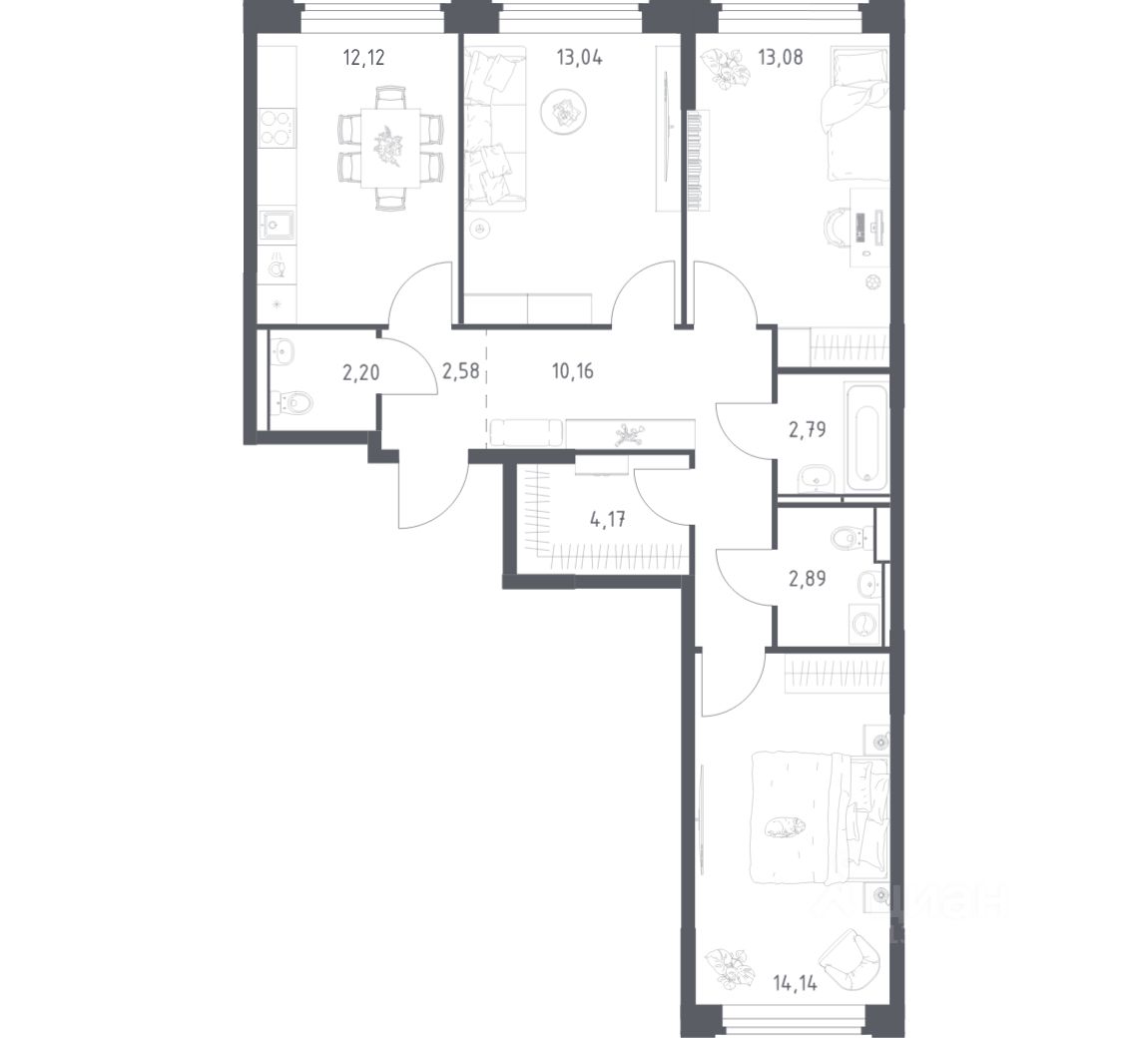 Квартиры комплекса — на выбор: могут быть как с отделкой, так и без. В случае с готовой отделкой в комнатах и прихожей уже будут обои, натяжные потолки и ламинат, а в санузлах — керамогранит на полу и керамическая плитка на стенах. Мы подведем все коммуникации и установим сантехнику. Светлые тона визуально делают комнаты еще просторнее. Вы легко воплотите любые идеи по обустройству и создадите интерьер в современном или классическом стиле. Можно сразу заказать кухню, комплекты мебели, светильники, декор и даже посуду в нашем маркетплейсе — мы полностью подготовим квартиру к новоселью.