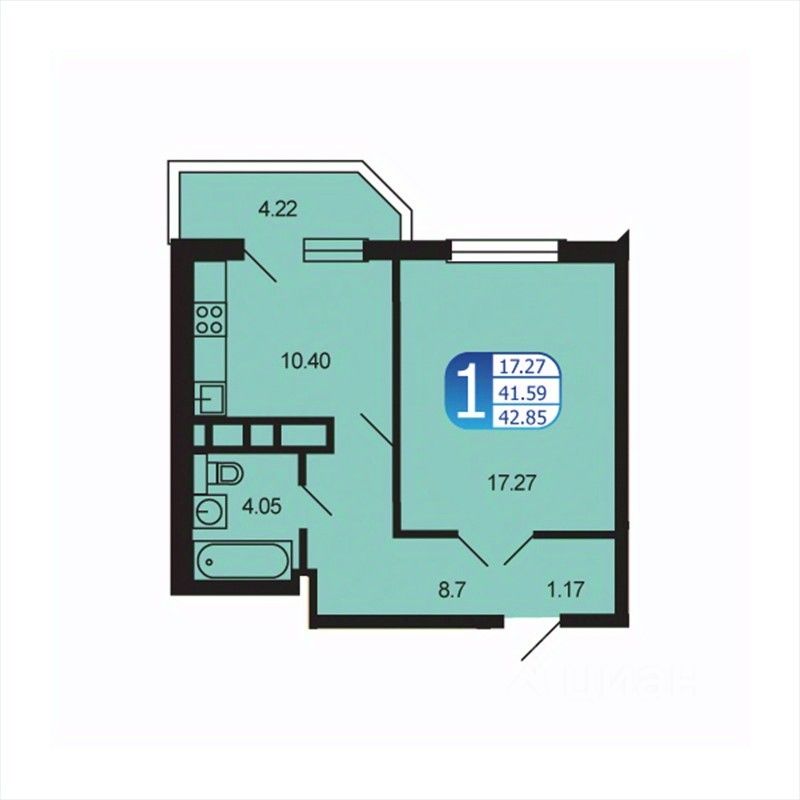 Общая площадь42,9 м2