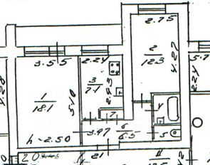 Общая площадь 48,4м², изолированные комнаты - 18.1м² и 12,3м², кухня 8м², раздельный санузел. Большая 6 м², застекленная лоджия. Шкафы, спальные места, техника: холодильник, стиральная машина. Состояние среднее.
