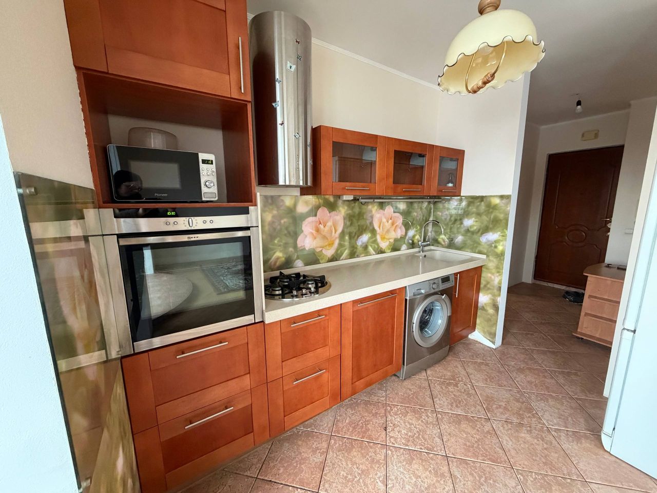Качественный ремонт, удобная перепланировка. В комнатах — натуральный паркет, установлены деревянные окна. Кухня новая, из массива бука, столешница — искусственный камень с интегрированной мойкой. Большой шкаф-купе из натурального шпона. Есть лоджия.