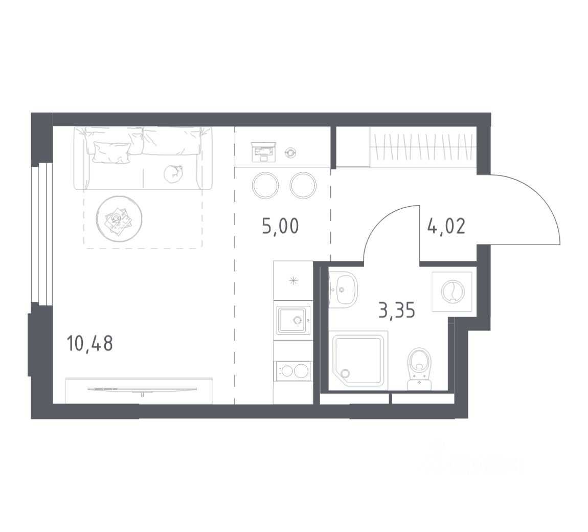 Общая площадь22,85 м2