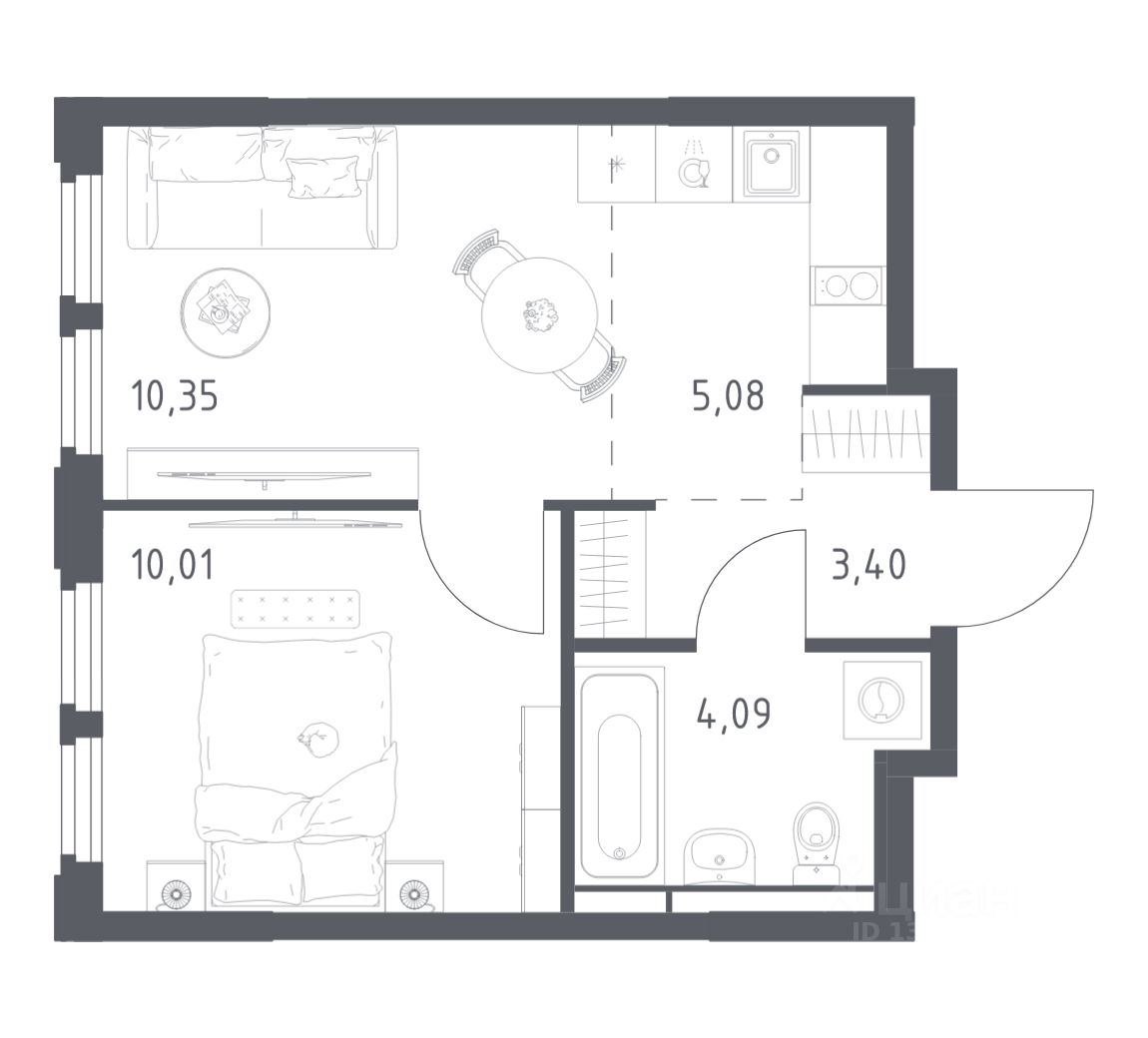 Общая площадь32,93 м2