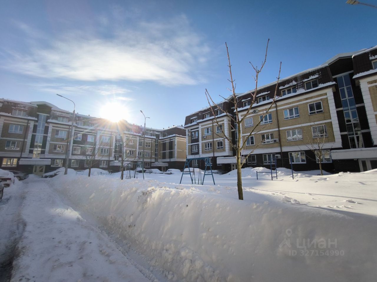 Во дворе детская площадка, парковка.
